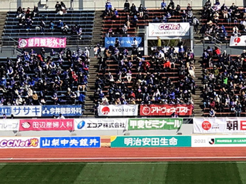2021年エコア株式会社では、スポーツを通じ青少年育成及び地域経済発展を応援しています。永らく中止されていた試合ですが、感染対策を行いながらシーズン幕開けとなりました。2021年3月14日ヴァンフォーレ甲府のホームでの戦いでは、栃木FCと2ー1で勝利しました。今後の活躍に期待します。