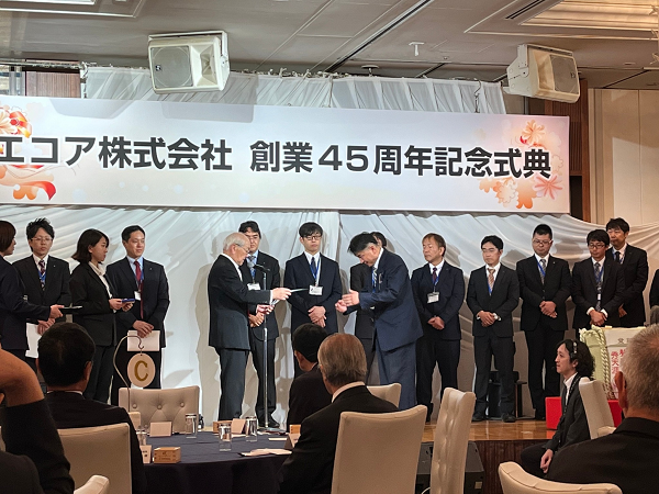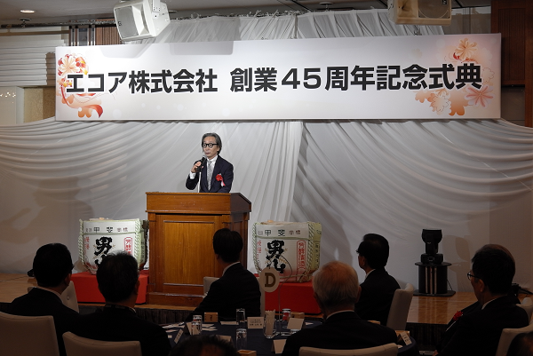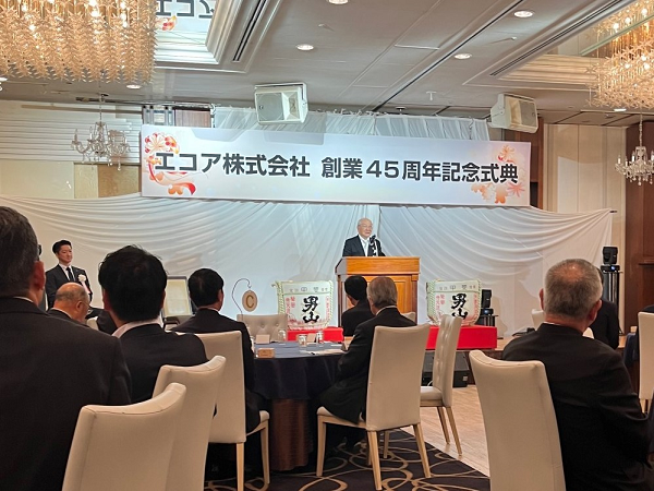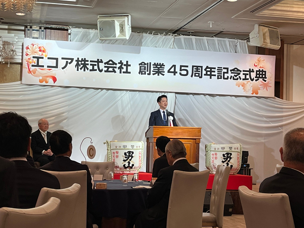 2024年7月13日ホテルエミシア立川にてエコア株式会社創業45周年記念式典が行われました。ご来場頂き誠にありがとうございました。皆様のおかげで、総合環境衛生管理業務をサステナブル社会に向けて長年にわたり提供することが出来ました。今後ともご支援・ご厚情頂きますようお願い申し上げます。記念品は能登半島の復興支援として輪島塗の箸をお贈り致しました。ご来場下さいました方、お花をお贈り頂きました方、電報をお贈り頂きました方、社員一同心よりお礼申し上げます。