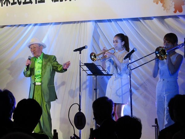 ![]() 終演は社員も舞台にて社歌を披露しました |